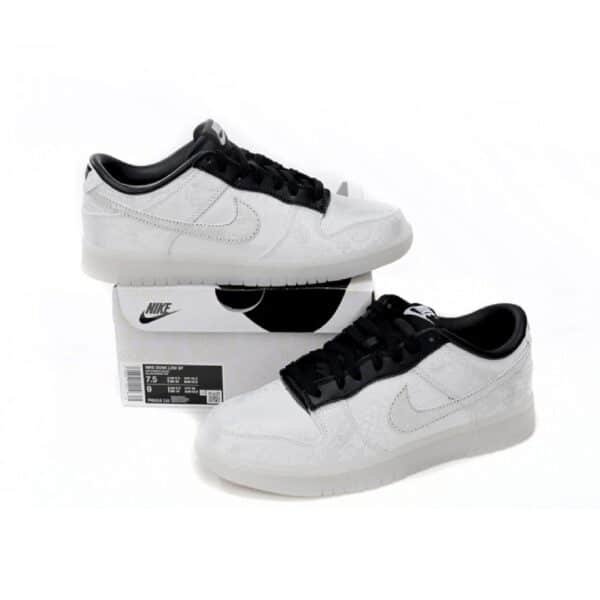 Le Nike Dunk Low Bianche e Nere x CLOT Fragment Sneakers Uomo Donna rappresentano una fusione esclusiva di tre grandi nomi: Nike, CLOT e Fragment Design. Queste sneakers sono il simbolo perfetto di eleganza e audacia, grazie al contrasto tra il bianco e il nero e ai dettagli esclusivi che le rendono uniche nel loro genere.